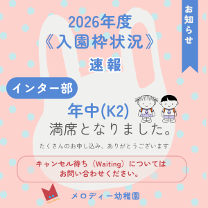 2026年度 【インター部 K2(年中)】は「満席」となりました。